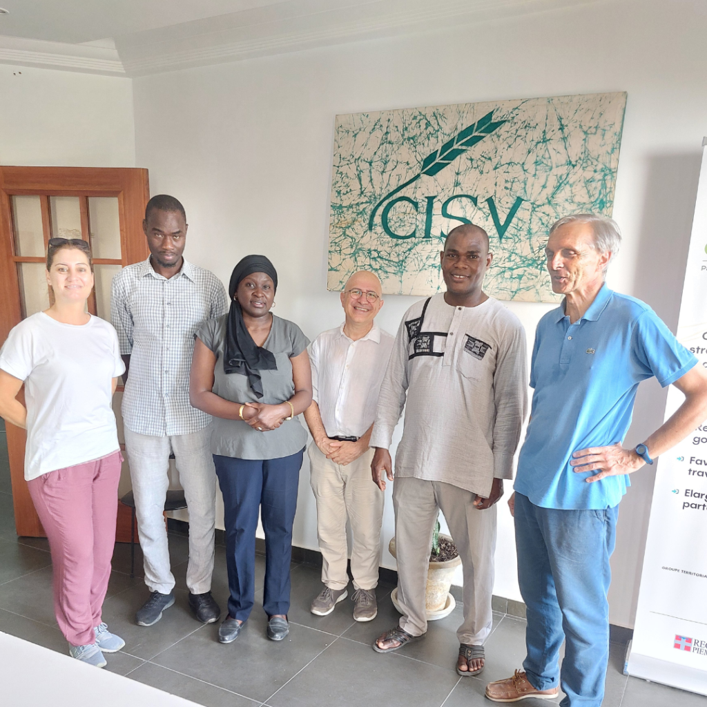 Lume è tornato a prenderci e c’è anche Sara Gianesini, la rappresentante CISV in Senegal, ad accoglierci con una deliziosa inflessione della voce che tradisce inequivocabilmente le sue origini venete. Ci rechiamo insieme alla nuova sede CISV di Dakar dove troviamo l’equipe dei collaboratori locali al lavoro. Dal balcone dell’ufficio si scorgono cantieri un po’ ovunque, un colpo d’occhio che offre una tangibile sensazione di effervescenza della capitale. Proprio ieri sera Lume, sulla strada dall’aeroporto, ci ha detto che ci sono tre grandi cementifici in piena attività nel Paese, e si vede. Nella mattina Federico e Sara hanno colloqui con l’equipe locale per fare il punto della situazione sulle iniziative in corso; in particolare l’attenzione va al poliedrico Progetto PROVIVES (Progetto di valorizzazione dell’impresa verde e sociale per l’innovazione, la crescita e il lavoro) succeduto al PAISIM, che vede al lavoro una rete di attori italiani, con CISV capofila, e locali, con un ruolo di primo piano svolto da CAPER, ente di formazione promosso anche da CISV alcuni anni fa.