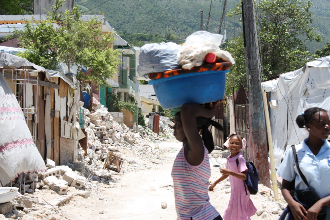 Marie Hélène ha 13 anni e vive a Martissant, uno dei quartieri più poveri di Port-au-Prince. Durante il terremoto del 2010 restò sepolta sotto un muro della sua casupola e dovettero  amputarle una gamba.  Da allora Marie Hélène si muove con le stampelle ed è una madam sara, una delle tante venditrici di strada che affollano i mercati sedute su piccole sedie di paglia. Come se non bastasse, lo scorso dicembre due vicini la presero e la stuprarono.