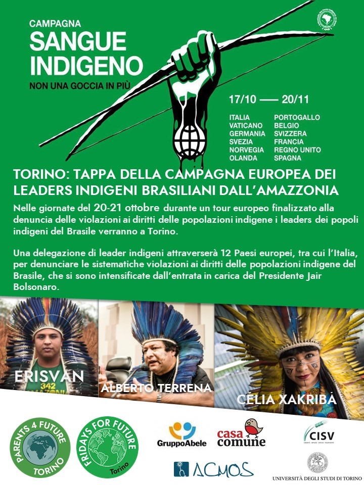 Lunedì 21 ottobre dalle ore 12.00 – Incontro all’Università di Torino con Anna Avidano, responsabile CISV area America Latina. L’incontro sarà dedicato all’ascolto della testimonianza dei leader indigeni, coordinato da docenti e ricercatori dell’università.